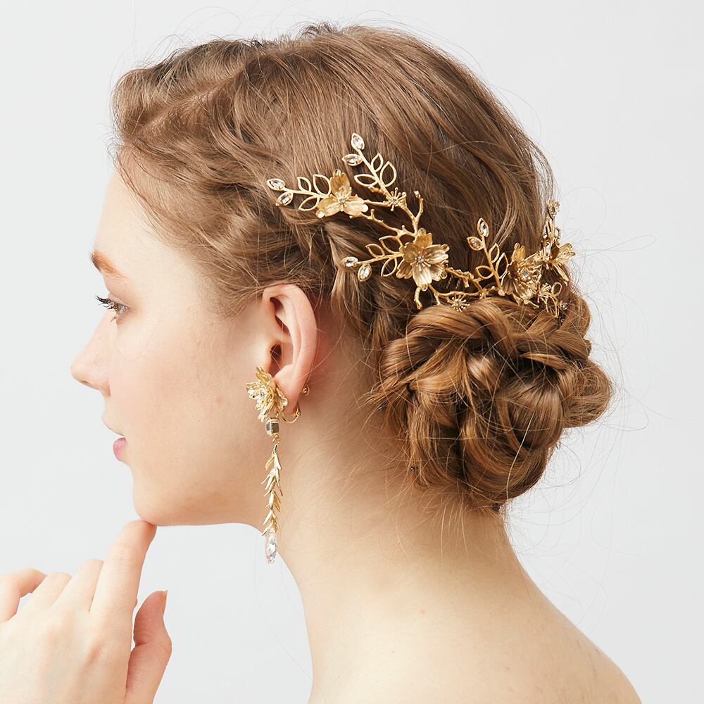 フロントに装着しても、またはバックカチューシャとしても、様々なヘアスタイルに対応できます。ナチュラルな雰囲気の装いがお好きな方に。