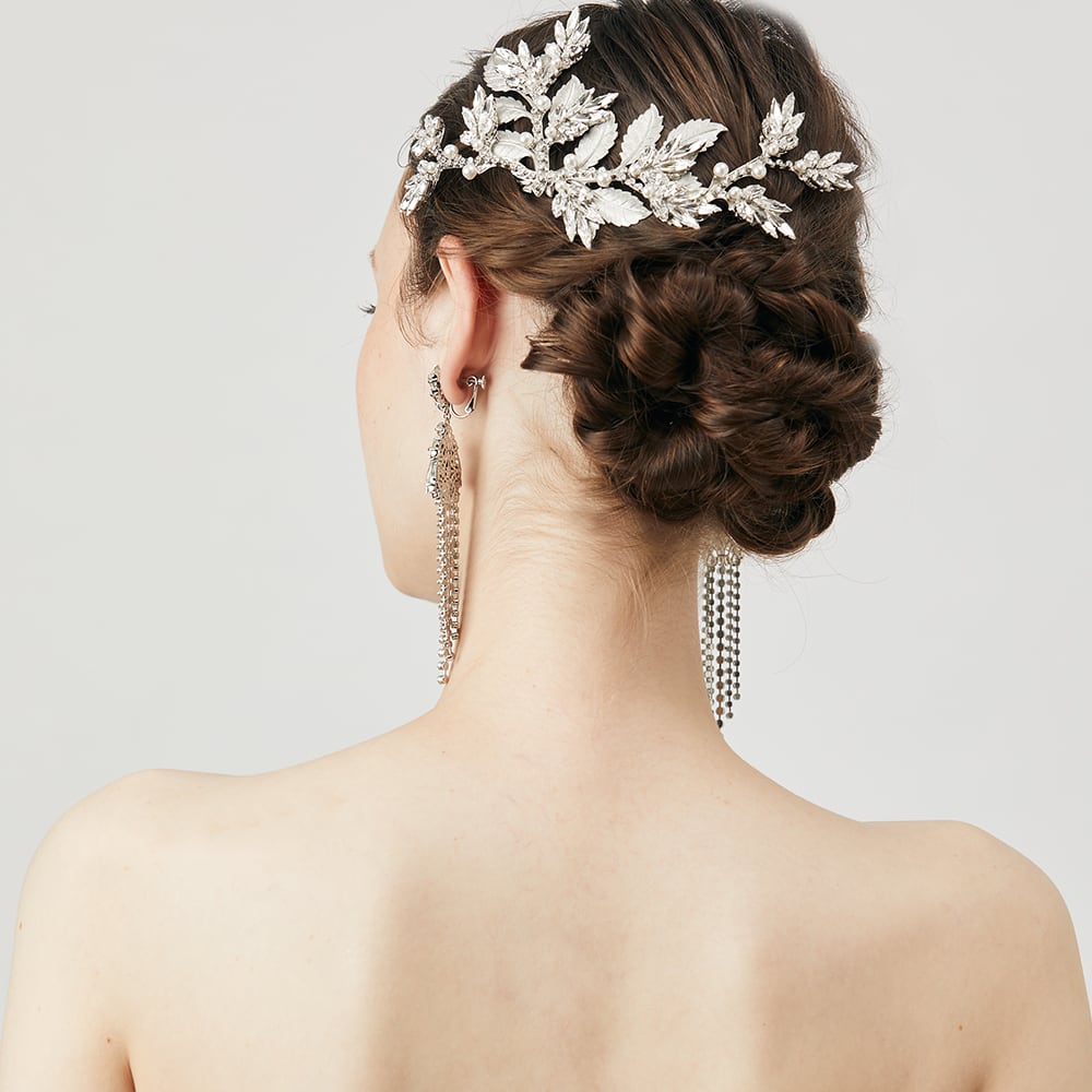 マーキスカットリーフ・クリスタルロング/イヤリング&ピアス【TER-180-SI】