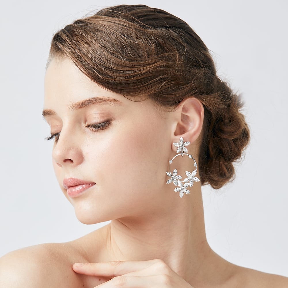 フラワークリスタル&フープ/ゴールド・シルバーイヤリング【TER-167-GO,SI】