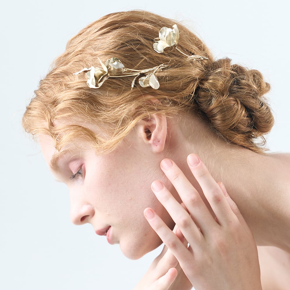 真鍮製型押しのペタルパーツでシンプル&ナチュラルな風合いの
