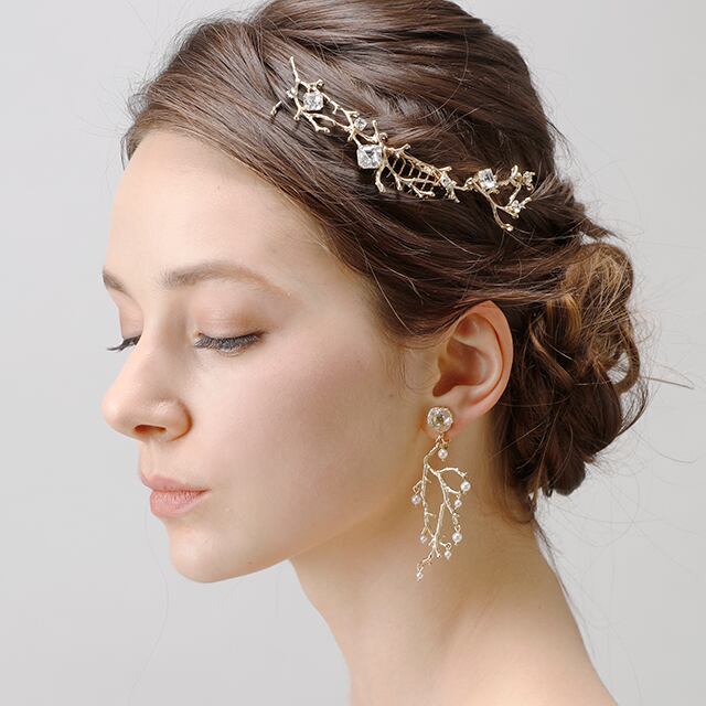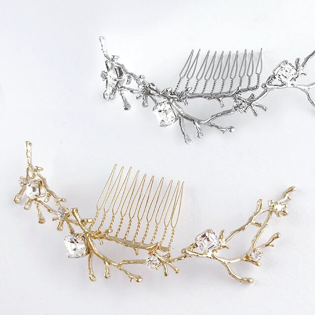 枝モチーフとアッシャーカットクリスタルのヘッド【THH-638-SI】