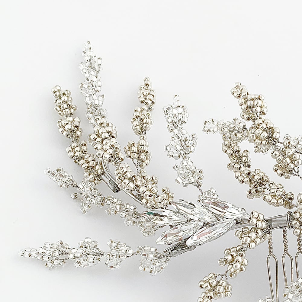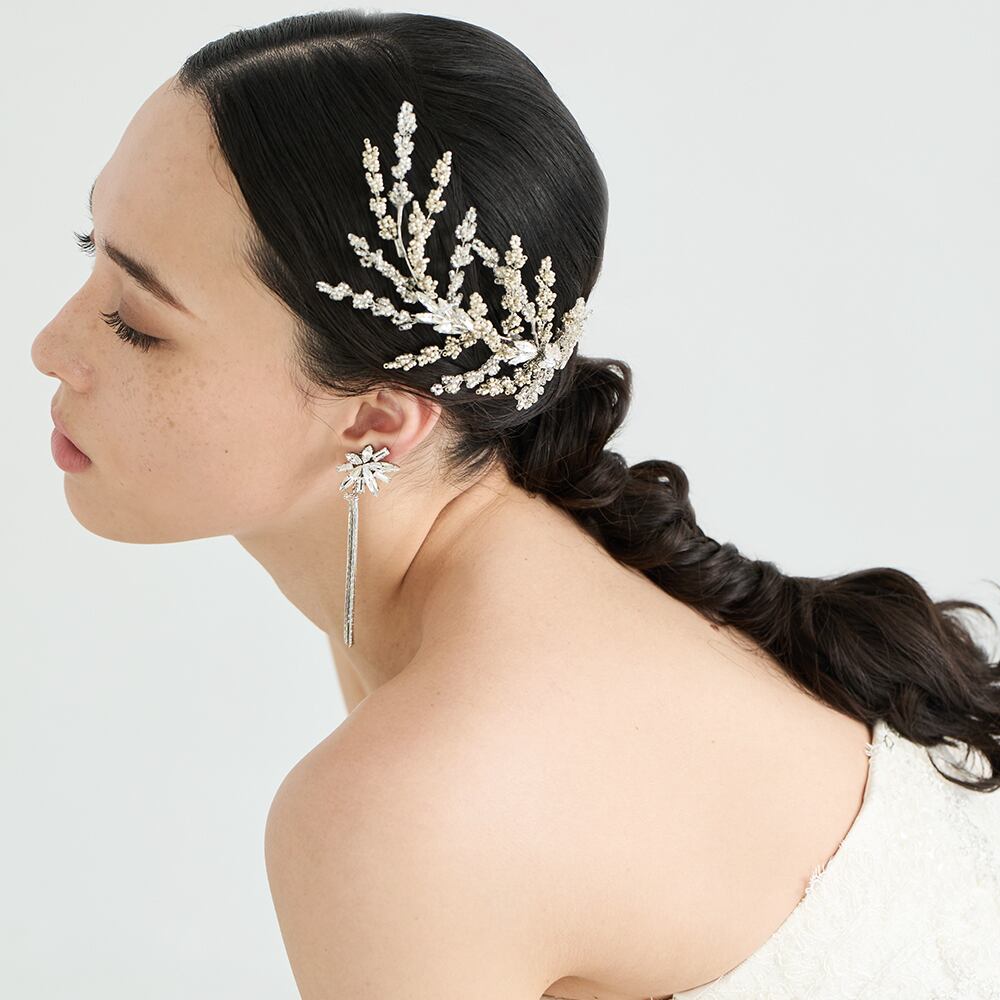 風になびく麦の穂のようなナチュラルな雰囲気を演出するヘッドピース、